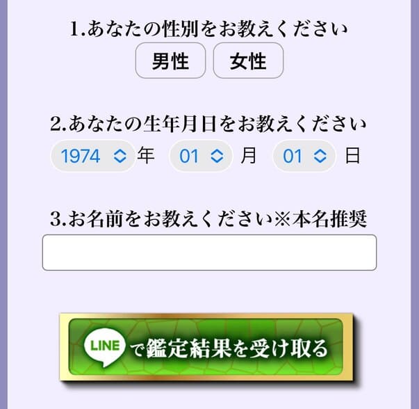 ②サイト内に入って【無料鑑定はこちら】をクリック!