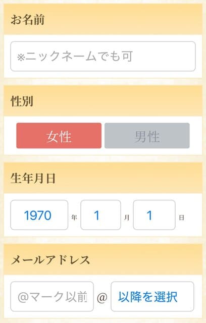基本情報【お名前、性別、生年月日、メールアドレス】を入力後、内容確認ご送信で完了です!