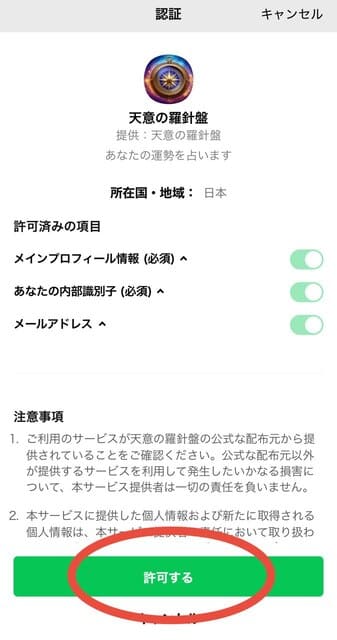 ③【LINE天乃りんか(天意の羅針盤)】で【許可する】→【友だち追加】で完了です!