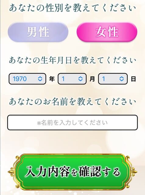 ②サイト内に入って、基本情報【性別、生年月日、名前】を入力後【入力内容を確認する】をクリック!