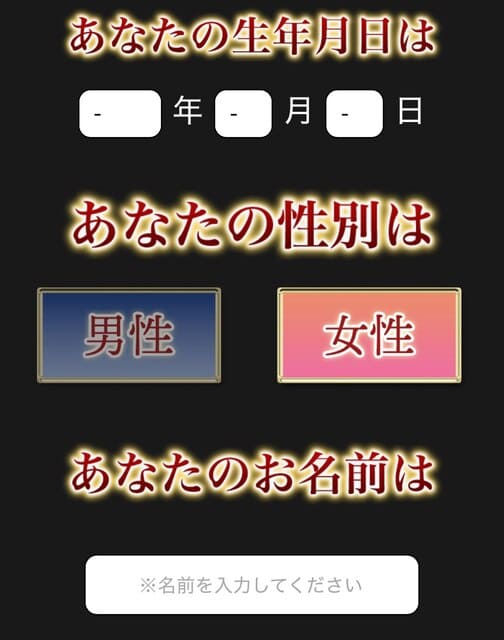 基本情報【生年月日、性別、名前】を入力後【LINEで無料鑑定】をクリック!