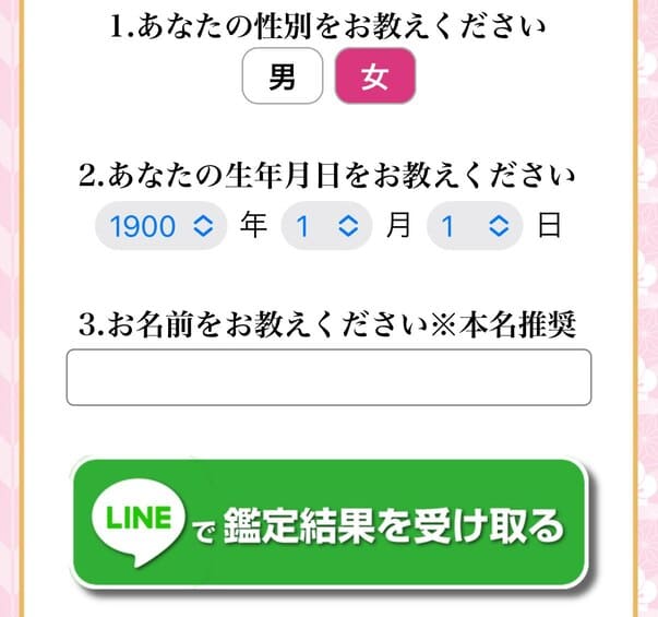 ③基本情報【性別、生年月日、名前】を入力後、【LINE宝珠和乃(福福)】で【許可する】→【友だち追加】で完了です!